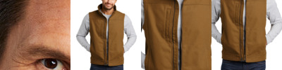 Soft shell technology meets durable duck cloth in this hardworking, water-resistant vest that has an ultra-warm fleece interior.
